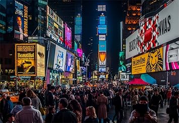 Aofoto 5x3ft Times Square Background New York City Skyscraper Crowded People Night Billboard Street Led Signs Photography Backdrop Urban Buildings